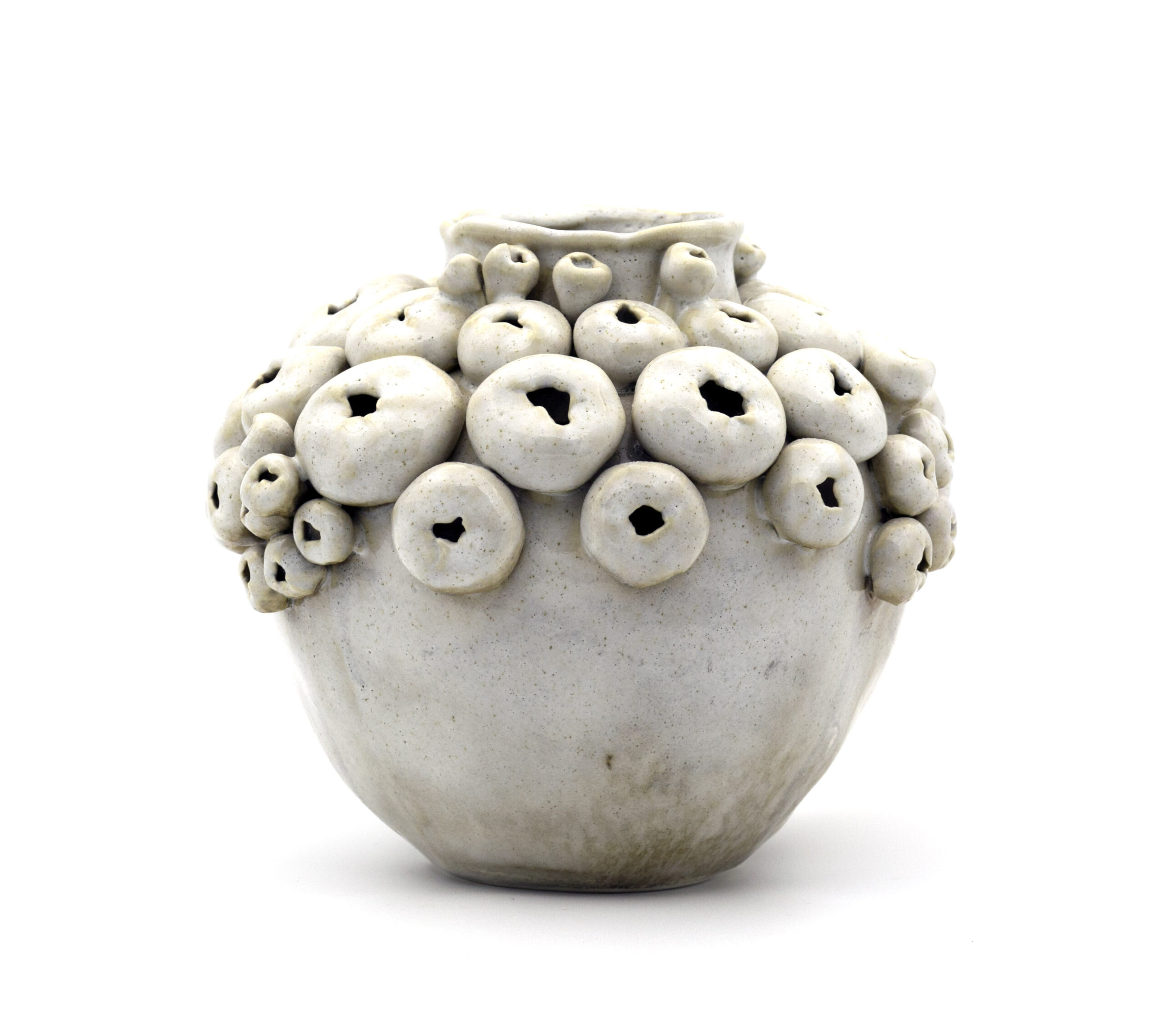 Cream colored round handmade vase, 8” ceramic pottery, coral iron bubble glaze handmade porcelain planter, suitable for home and office decoration.